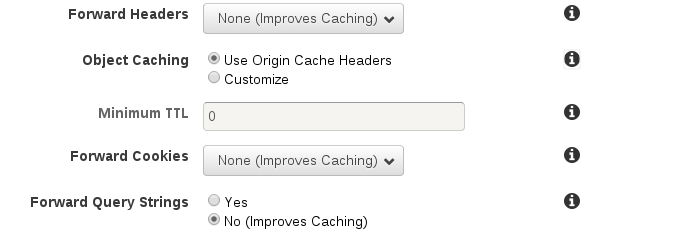 Next is to tell the CloudFront cache to whether forward the request headers of the user or not. This means that CloudFront can make use of some headers in the cache key.