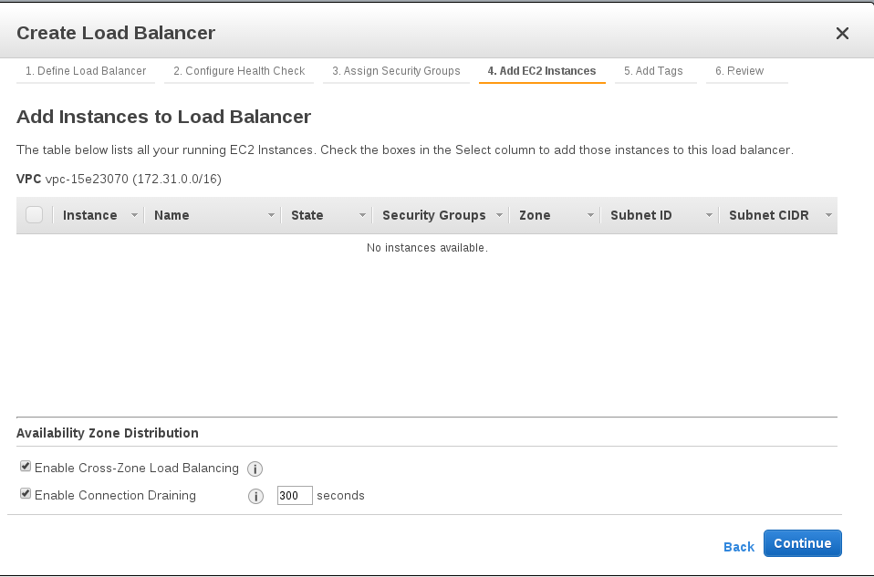 Adding the EC2 instances to the load balancer. In case the EC2 instances are assigned to different availability zones and the traffic is distributed among them. The ELB must points to multiple availability zones. This can be done by checking “enable cross zone load balancing” option.