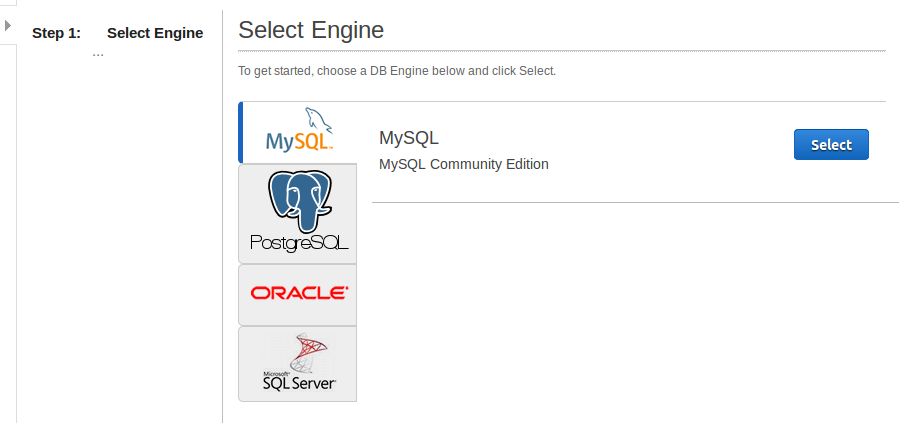 This is the step of choosing the DB engine to be used for the creation of the DB instance.