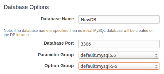 Note that the security group and any other applied firewalls should allow traffic on this port. - Parameter Group and Option Group: Both depends on the selected version of the DB engine.