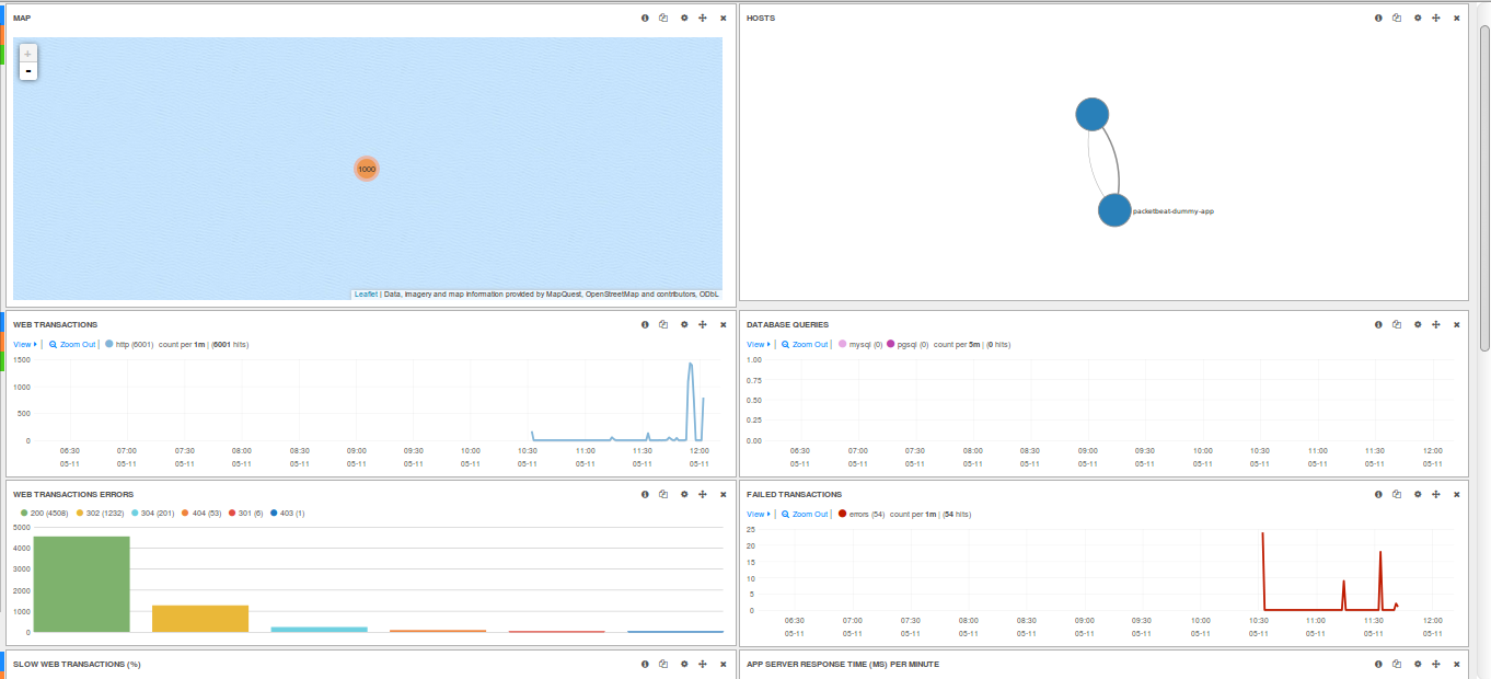 Now I want to see php-fpm data. I didn’t know why it wasn’t showing up until I re-RTFM-ed and found that they only support a limited number of protocols for now. Also, It seems that Packetbeat does not support multiple-application setups.